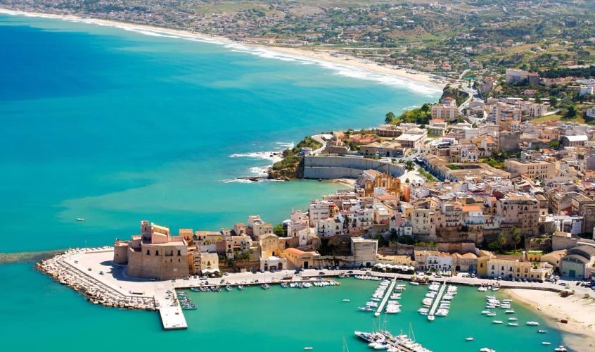 - Sciacca: Den pastelfarvede havneby Sciacca ligger på sydkysten af Sicilien mellem Agrigento og Selinunte. Sciacca er kendt for de termiske kilder, som er varme mineralske bade. Her kan du slikke sol på de dejlige sandstrande og tage forfriskende dukkerter i Middelhavet. En oplevelse er at slentre rundt i de hyggelige gader og på torvene og nyde al den lækre mad, som lokale restauranter og barer har at byde på.